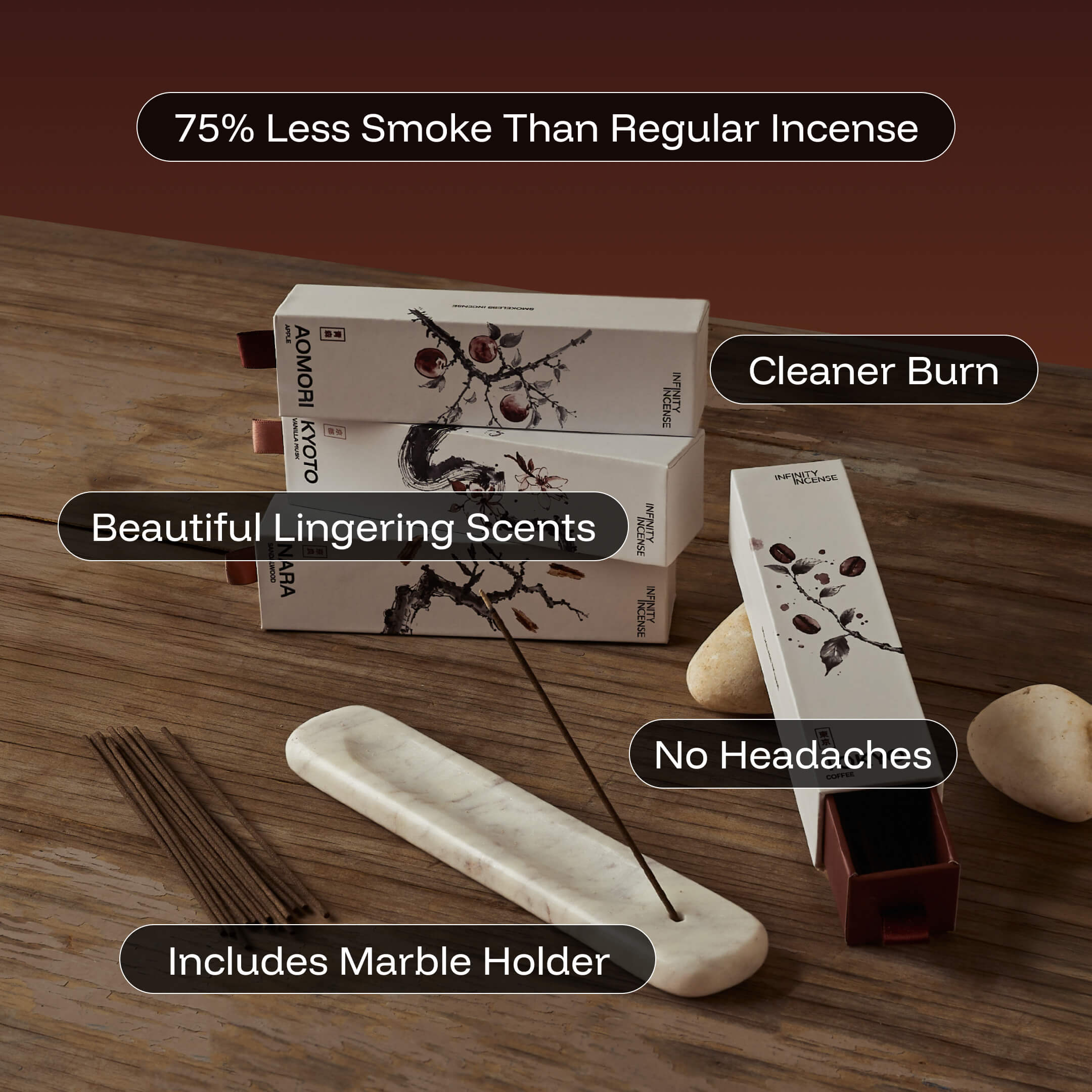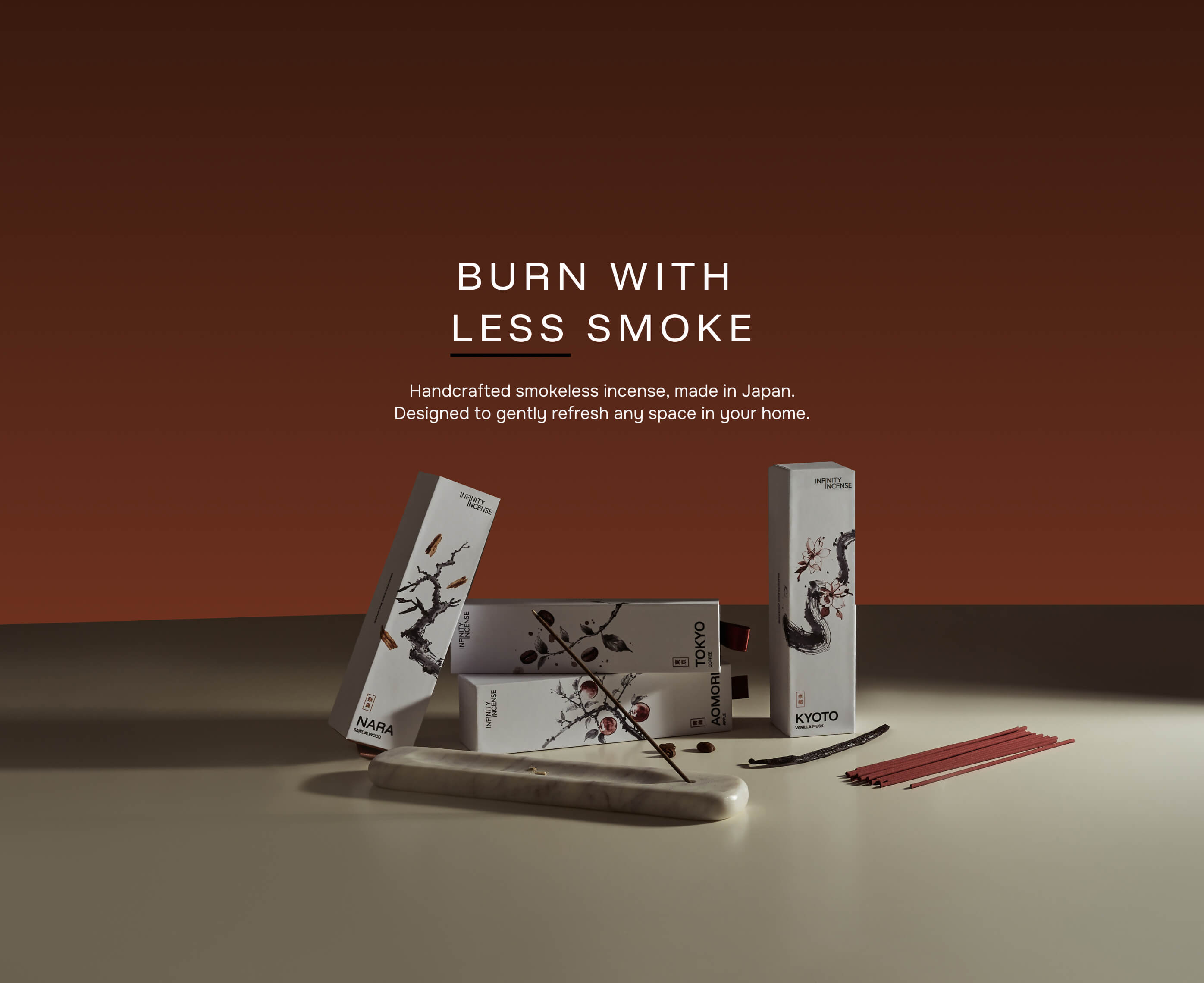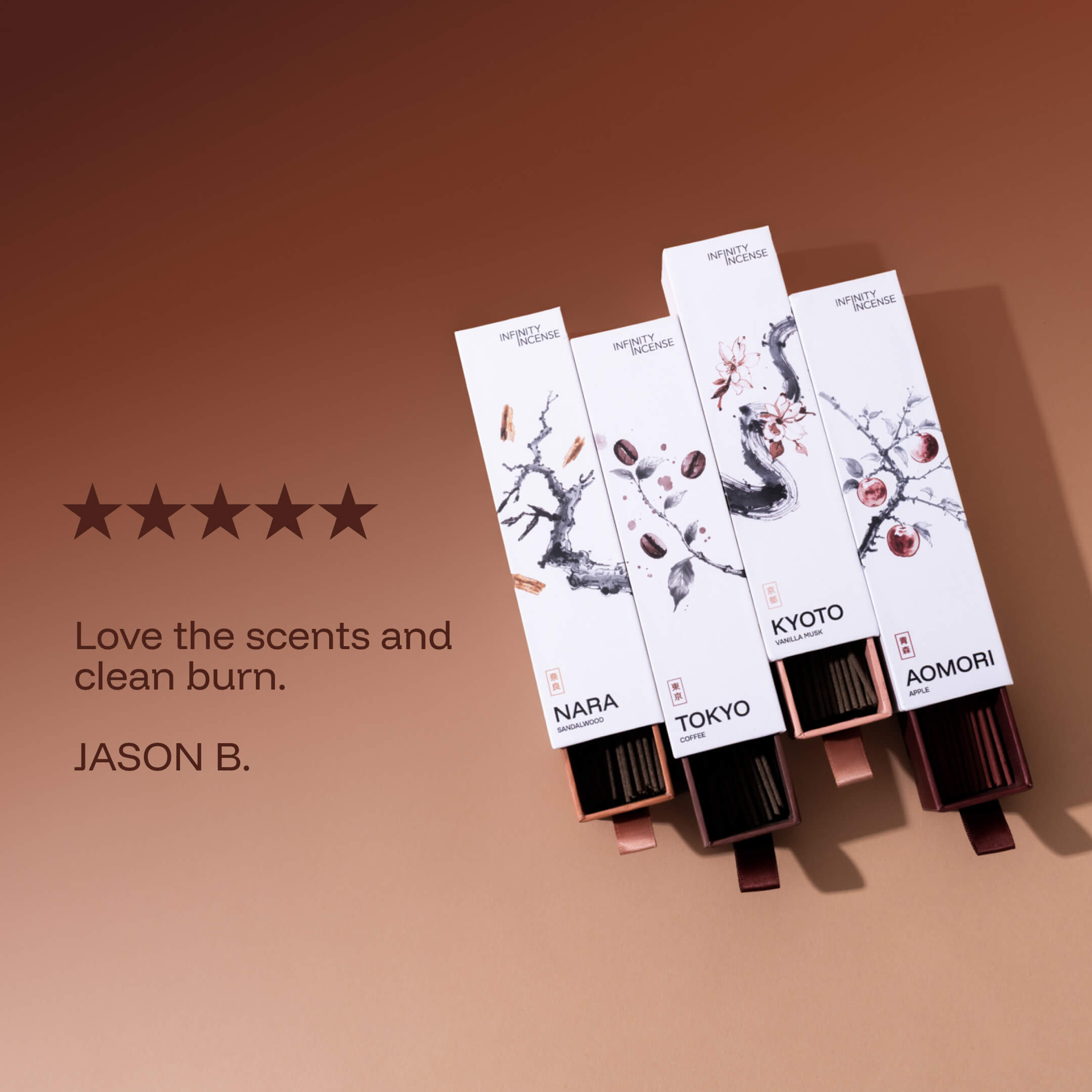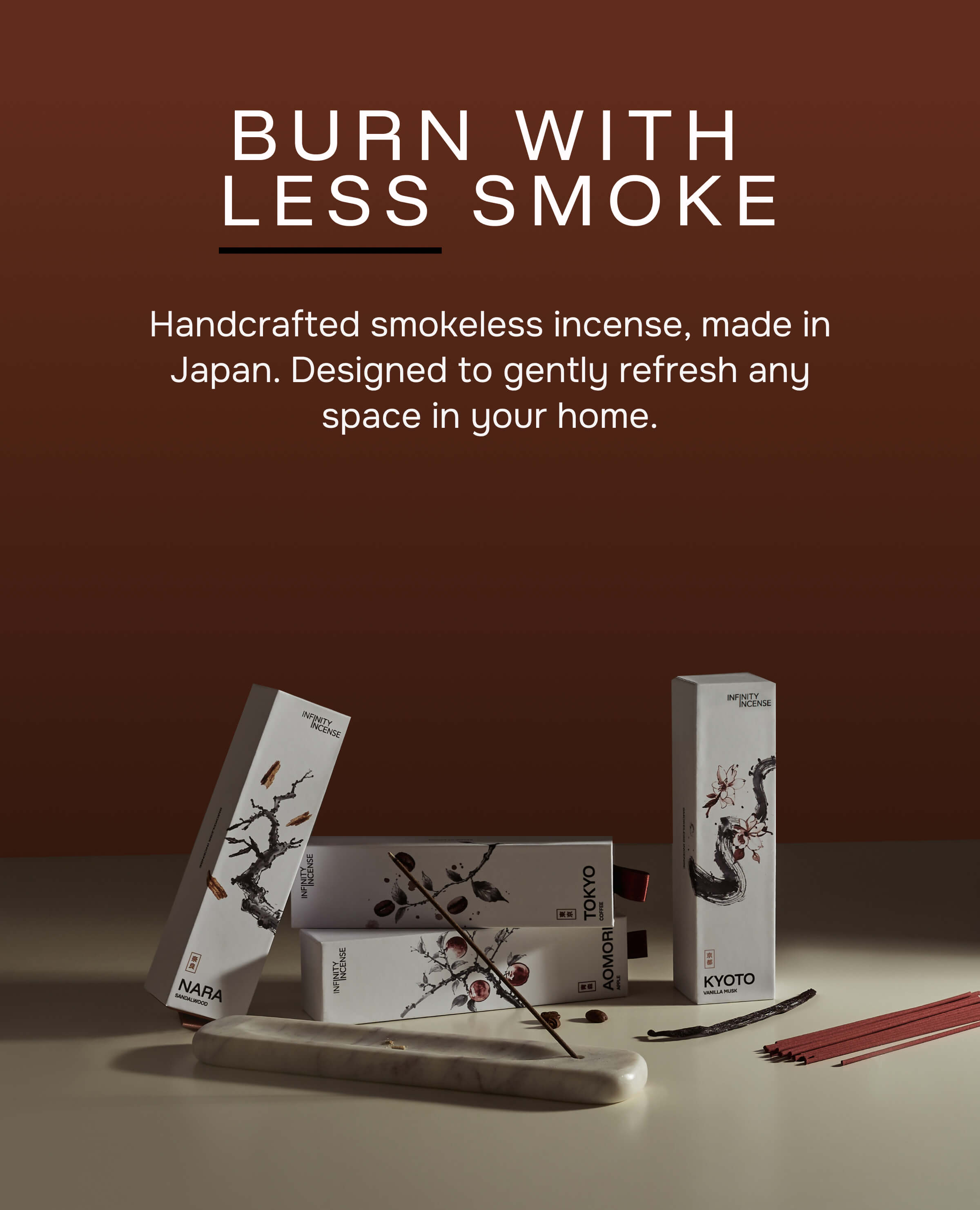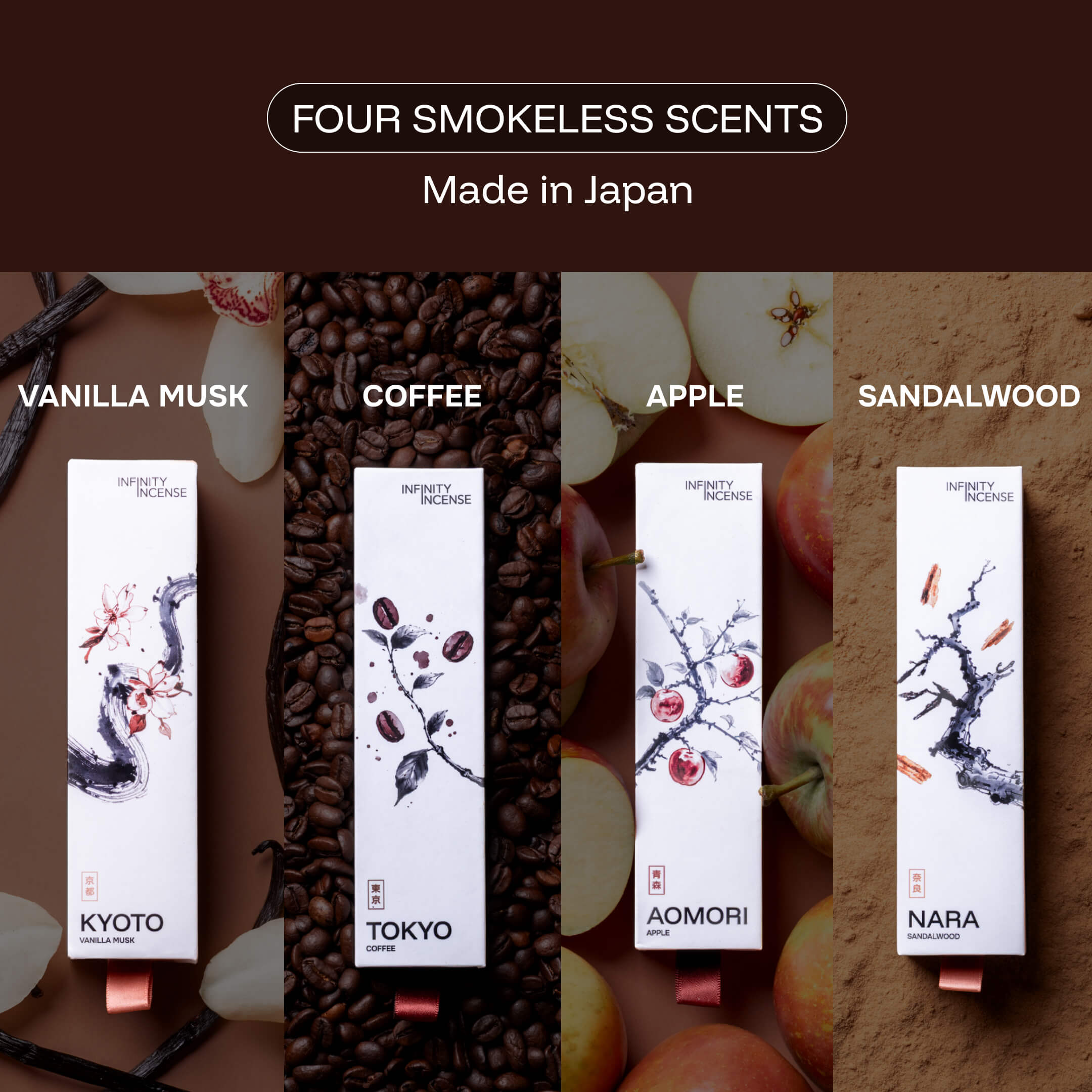 All 4 (Kyoto, Tokyo, Aomori and Nara) of our unique smokeless incense scents.